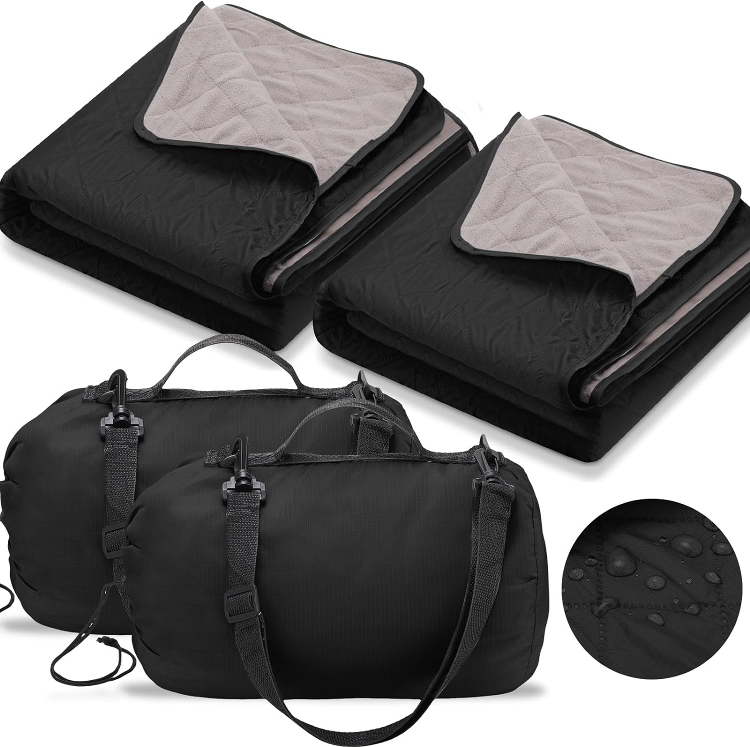 2 Pcs Large Outdoor Blanket 78'' x 55'' Quilted Windproof Waterproof Blanket Fleece Sandproof Stadium Blanket Foldable Warm Blanket for Camping Picnic Sporting Events Car Cold Weather (Black)