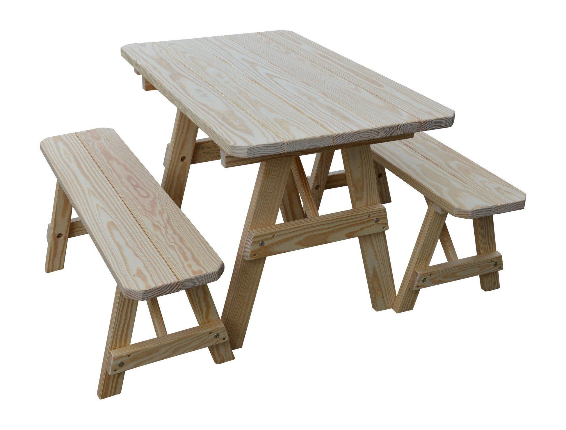 A&L Furniture Co. Pressure Treated Pine 4' Traditional Table w/2 Benches - LEAD TIME TO SHIP 10 BUSINESS DAYS
