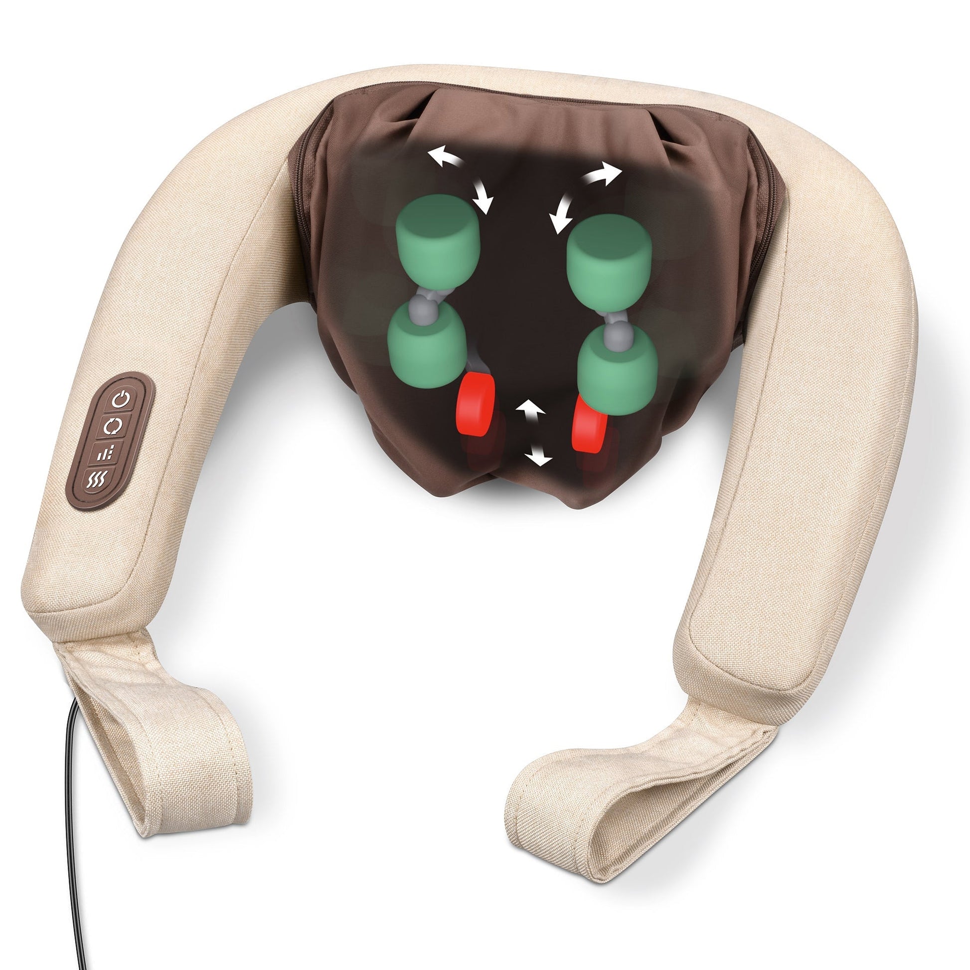 - VERSATILE DESIGN: The massager fits perfectly behind the neck, back, and body. Versatile massage with optional heat function and clockwise/counterclockwise rotation. Practical handles for controlling the massage intensity. Great for pain relief!