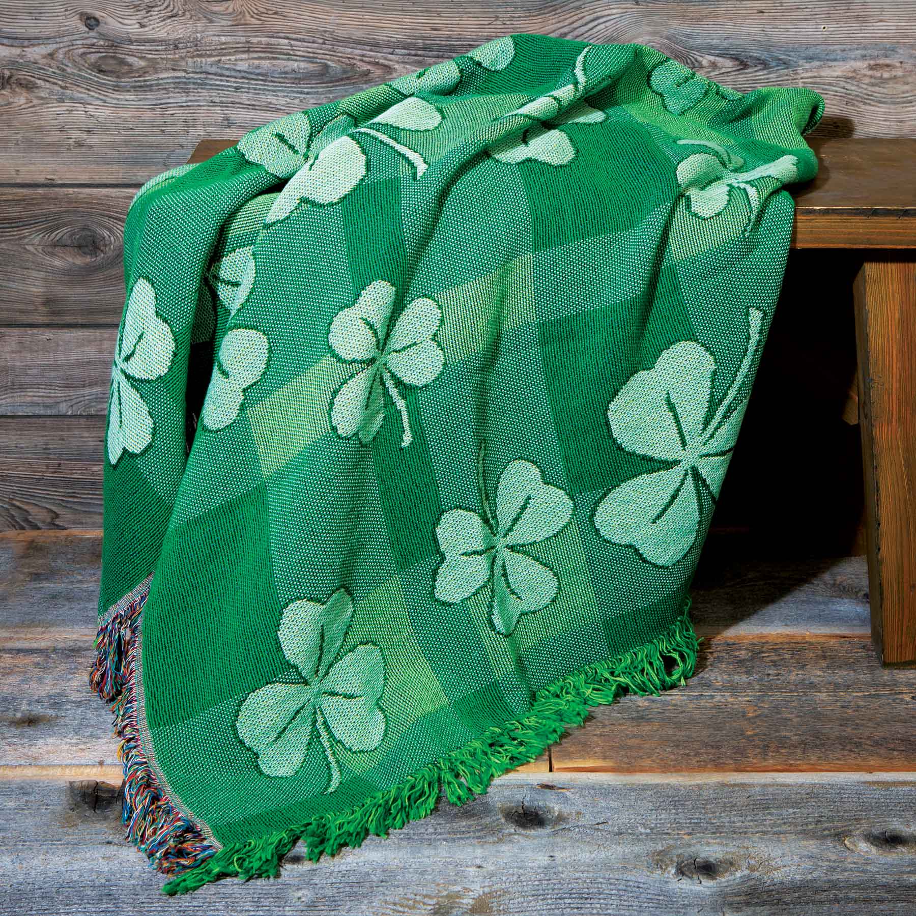 Measuring 46" L x 60" W, it's the ideal size for draping over a couch or wrapping around your shoulders. Whether you're celebrating your Irish roots or simply love the beauty of Celtic design, this Shamrock Reversible Plaid Blanket is a wonderful addition to any home.
