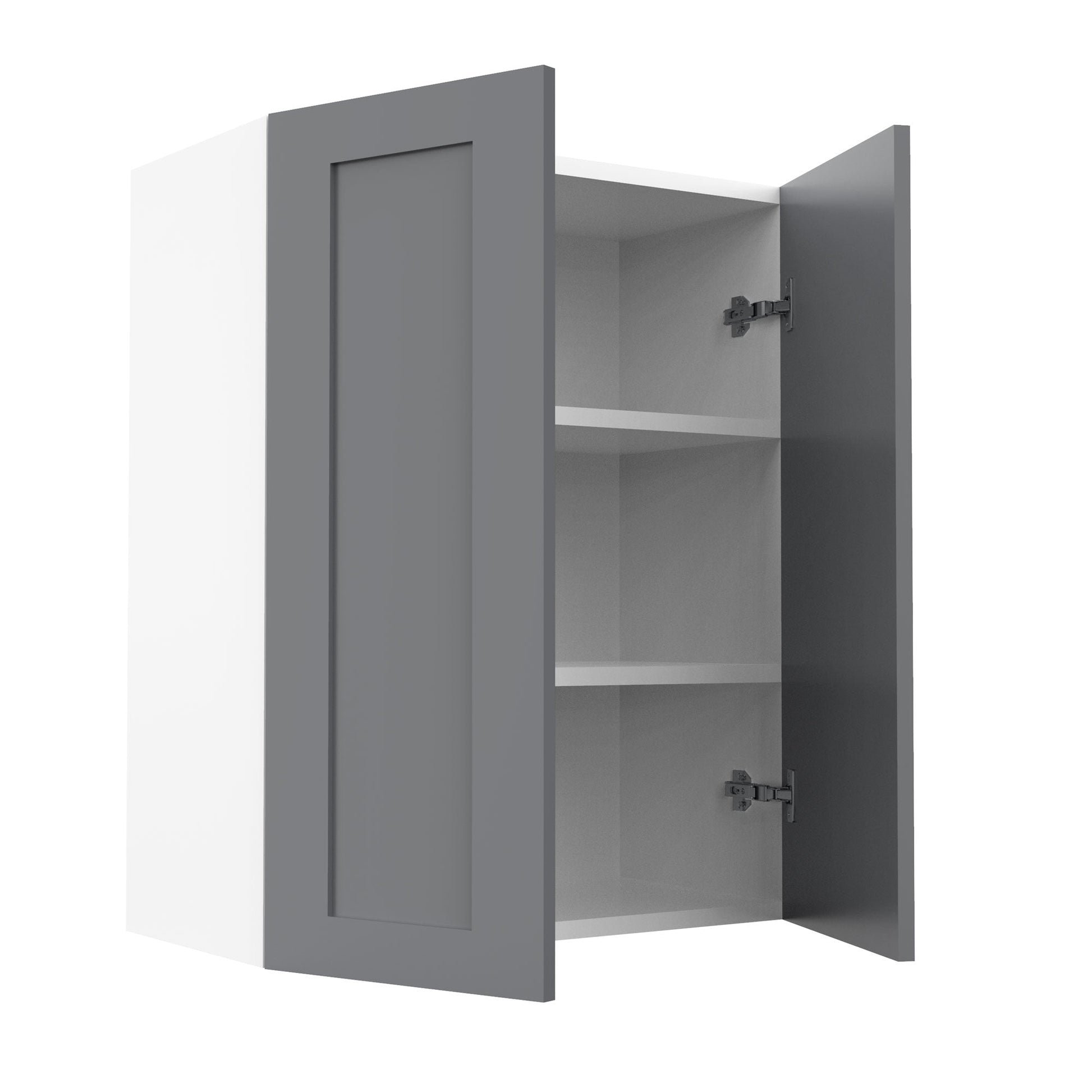 RTA - Grey Shaker - Double Door Wall Cabinet | 24"W x 30"H x 12"D