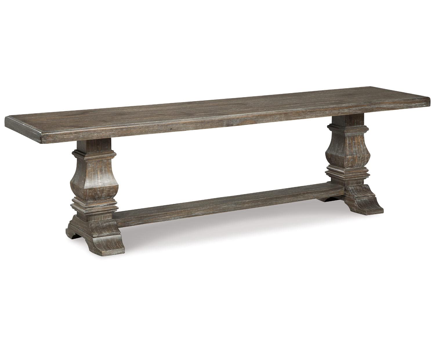 - DISTRESSED CHARM: This dining bench entices with a distressed aged pine color finish with light wire-brushed texture. Benches work beautifully as an addition to dining chairs