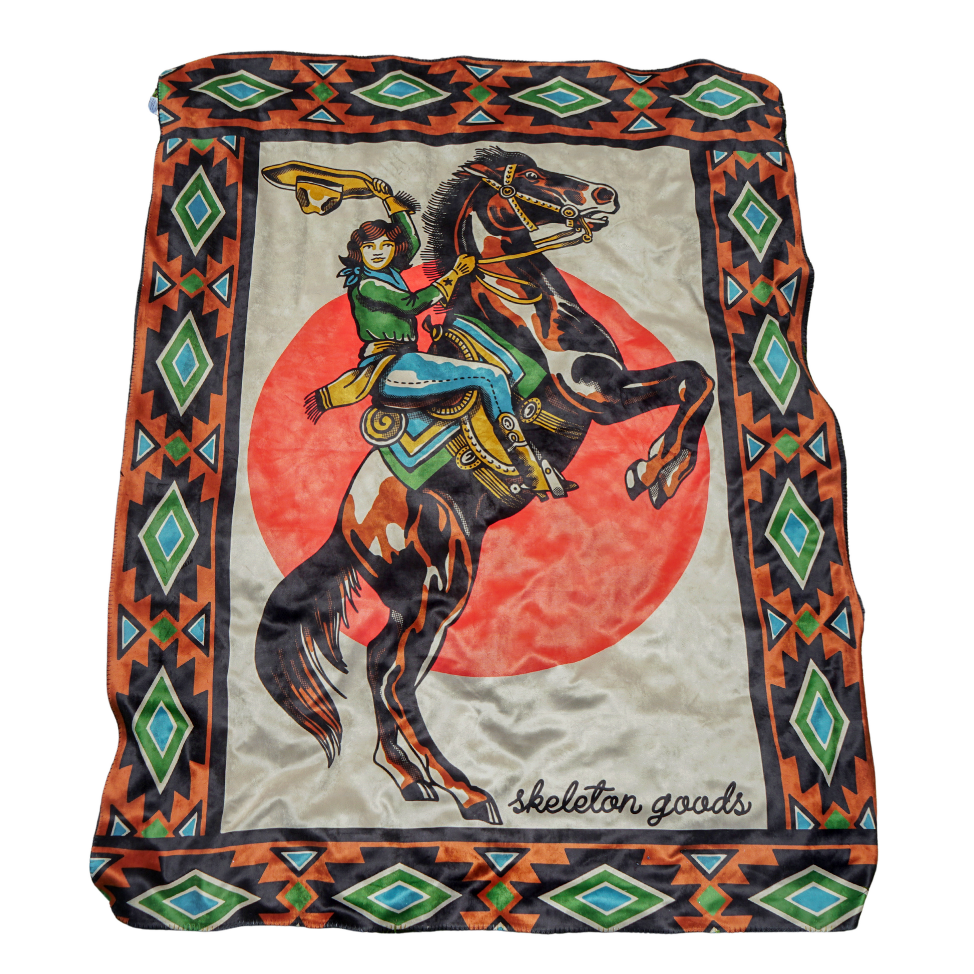 Wrap yourself in warmth and timeless style with our Sherpa-Lined Fleece Blanket! Featuring a mounted cowgirl framed in a western print, this blanket brings a touch of vintage charm and personality to your home decor. Whether you're cuddled up on the couch or adding a unique accent to your bedroom, our Sherpa-Lined Fleece Blanket is sure to delight both tattoo enthusiasts and cozy comfort seekers alike.