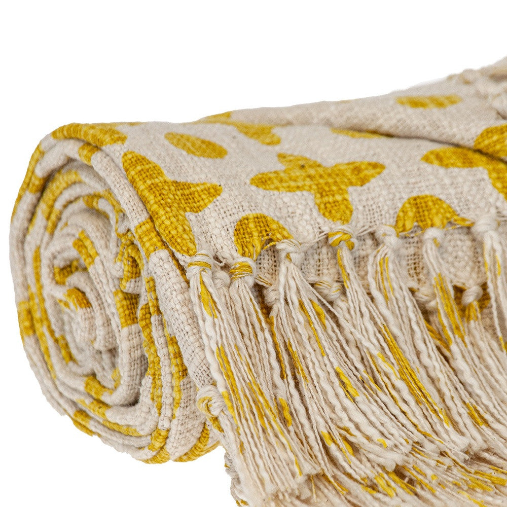 Yellow Woven Cotton Abstract Throw Blanket