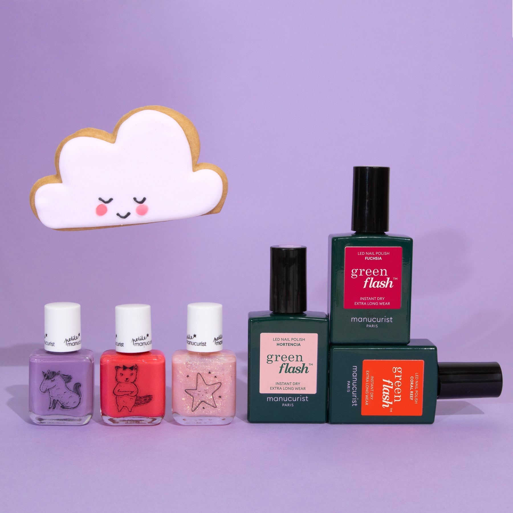 A set of Green Flash? Led Polish and water-based petite Manucurist shades, perfectly paired for a moment to share
