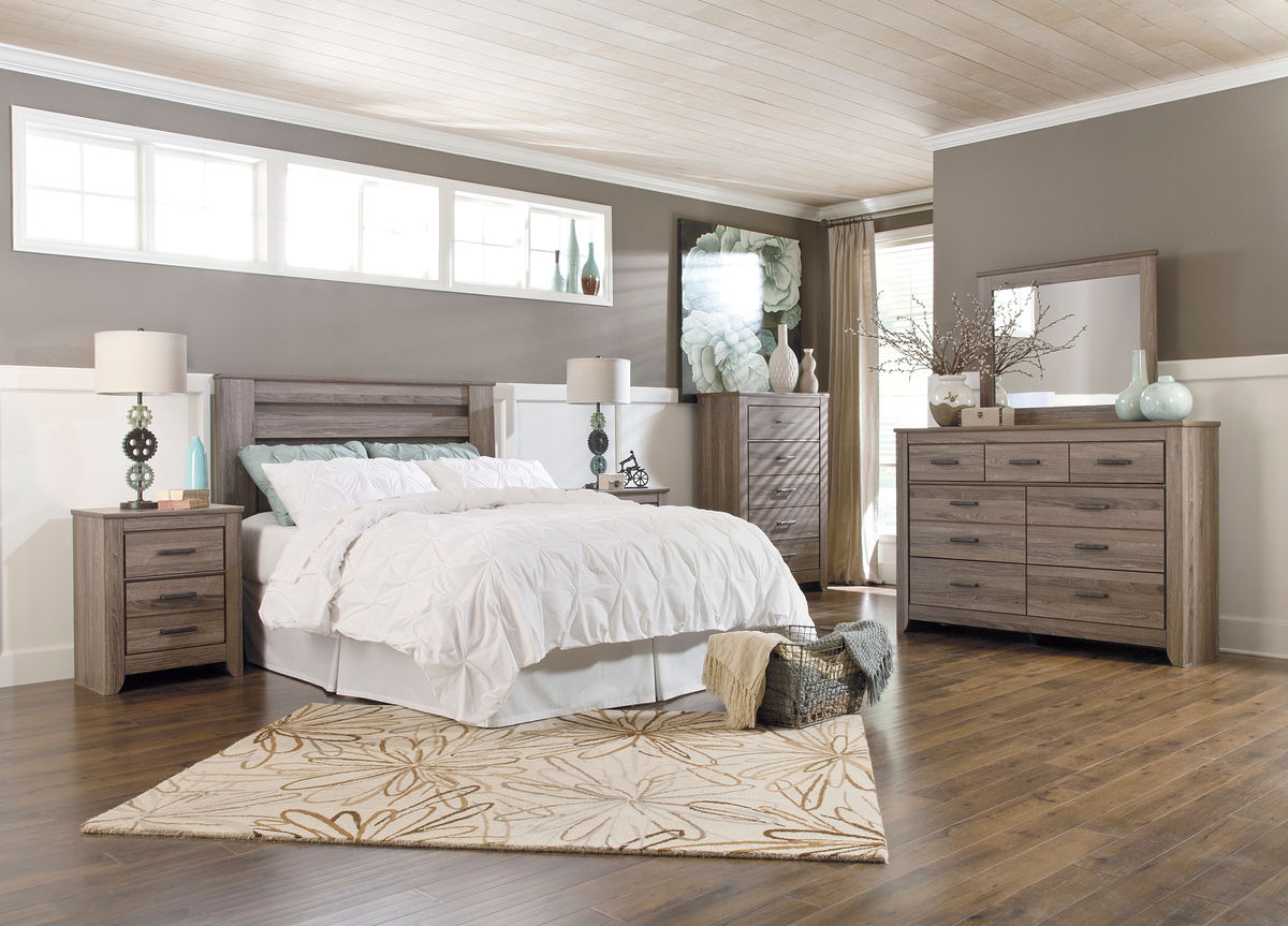 The true rustic beauty of vintage style has never been brought to life more than with the warm relaxing design of the, Zelen, bedroom collection. The warm gray finish features a stylish white wax effect beautifully complementing the replicated oak grain all surrounding the unique horizontal pocket details and wide pilasters adorning this rustic furniture.